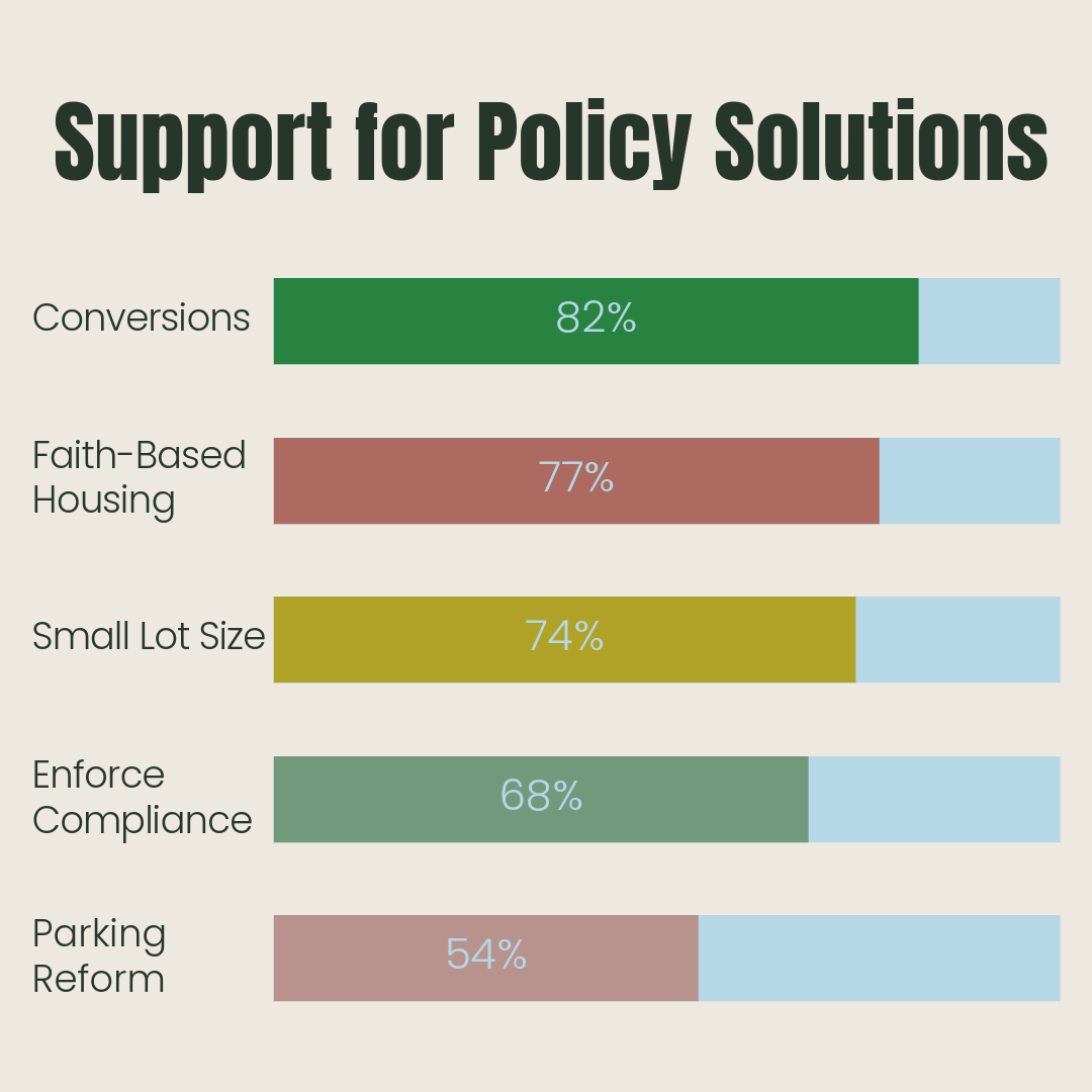Rhode Island voters support specific policy solutions. Voters expressed strong support for a suite of potential housing reforms currently pending before the state legislature: